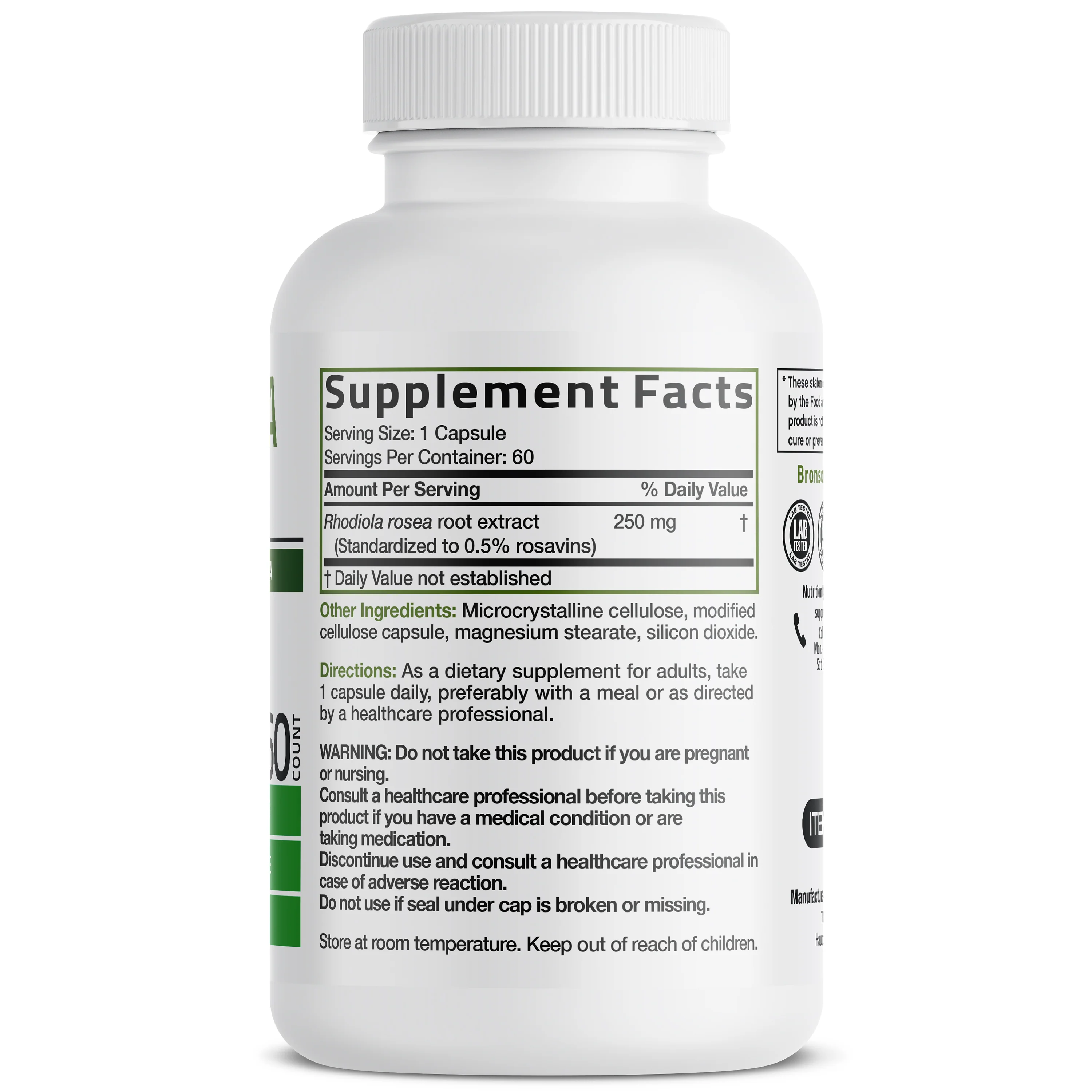 Bronson’s Rhodiola Rosea provides high quality Rhodiola Extract per vegetarian capsule to support healthy brain function, energy, stress, and overall mood.* Rhodiola Rosea is considered an adaptogenic herb, as it helps the body cope and adapt to the various stresses that occur in daily life.* In-house laboratory tested and free of GMOs, Gluten and Soy.